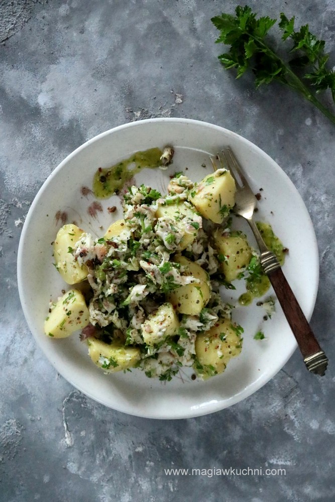 Gorąca sobota , pyszna wędzona ryba 😉 i do tego jeszcze ciepła jeszcze ciepła, prace ogrodowe taki właśnie był weekend 😉 … z tego co jeszcze zostało powstała pyszna sałatka ziemniaczana niezwykle aromatyczna idealna do zabrania do pracy, koniecznie spróbujcie z świeżo mielonym pieprzem polecam