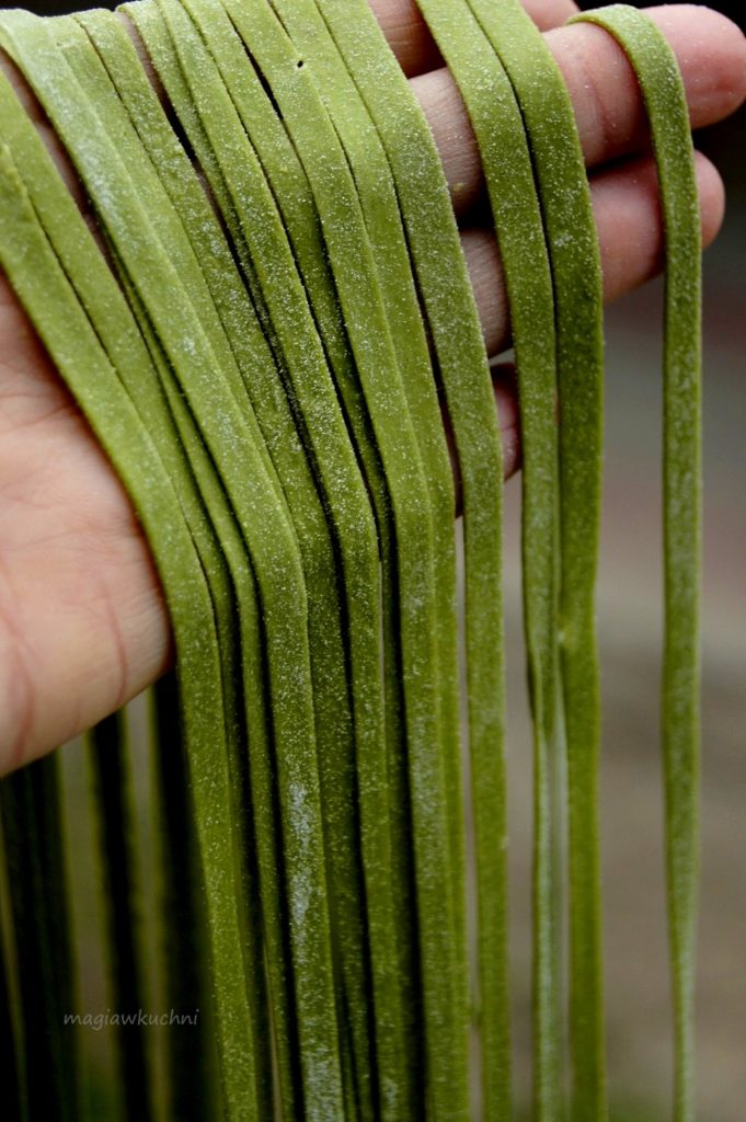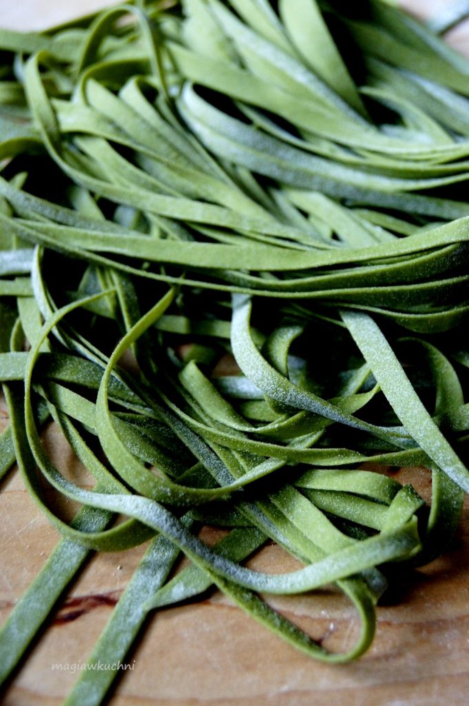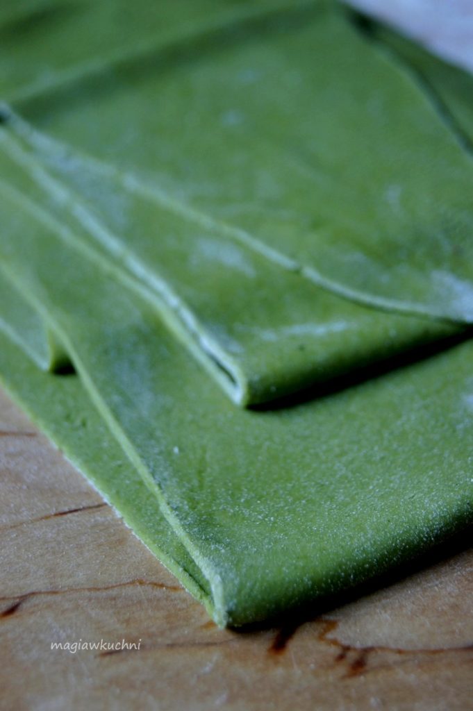 Nie ma jak domowy makaron, ale tym razem zieloniutki szpinakowy – wyszedł bardzo smaczny z mąki razowej delikatny w smaku z lekkim posmakiem szpinaku bardzo polecam 😉