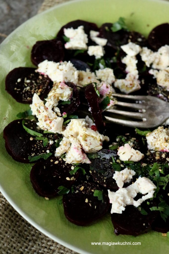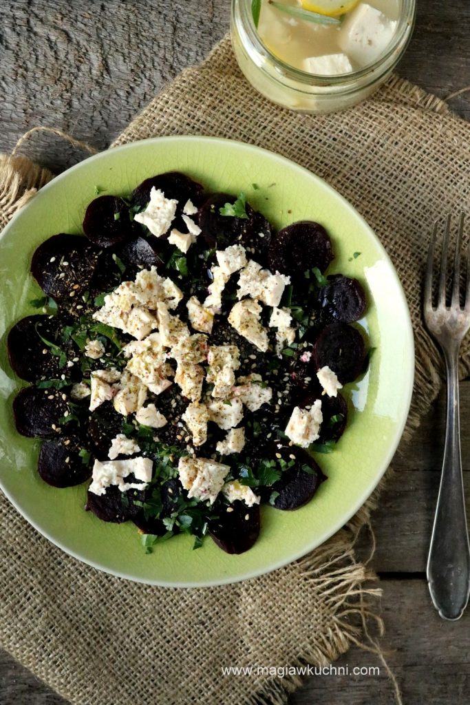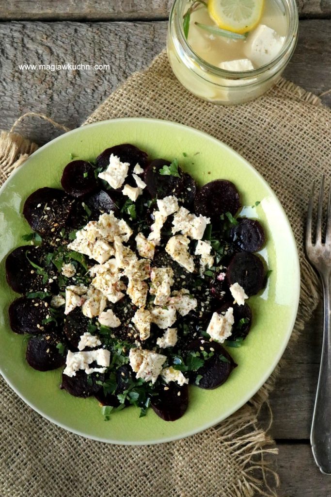 To carpaccio dla wegan bo mięsa w nim nie znajdziecie jest przygotowane z pieczonych słodkich buraków i marynowanego tofu 😉 Choć nie jeden mięsożerca się na nie skusił więc myślę że i wam powinno zasmakować. Oczywiście tofu możecie wymienić na fetę ,czy też ser kozi a nawet na parmezan jak kto woli .Polecam