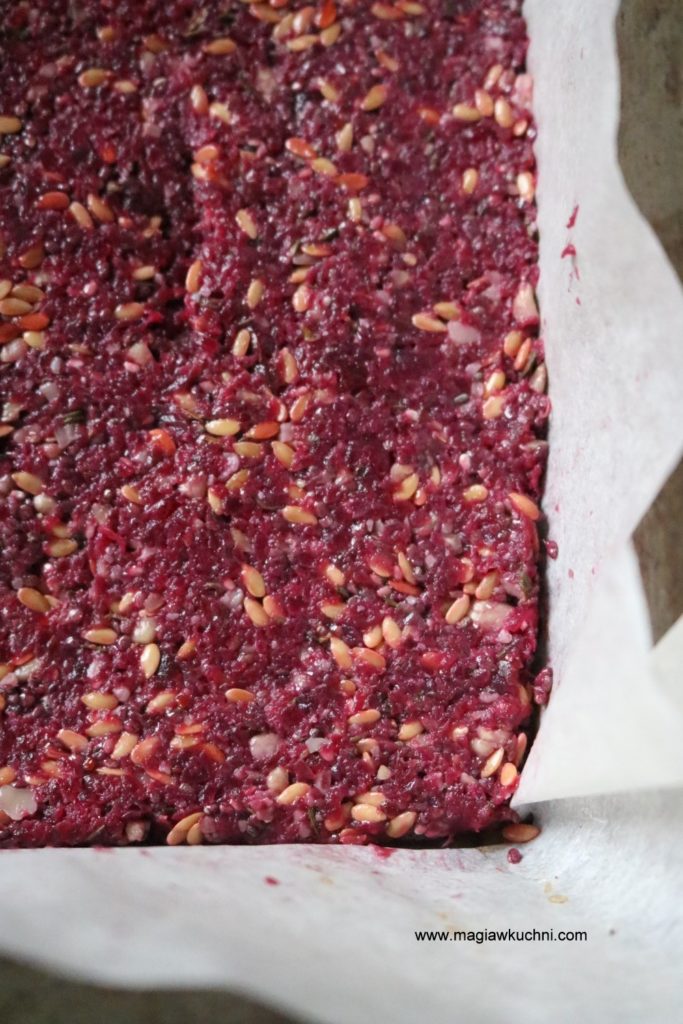Kolejna partia zakwasu zrobiona 😉 no i zostały znowu buraczki najczęściej przerabiam je na sok a z wytłoczyn robimy chlebki z ziarnami bez mąki, są idealne jako przekąska lub jako dodatek do ulubionej pasty czy też hummusu 😉 Zróbcie koniecznie … polecam
