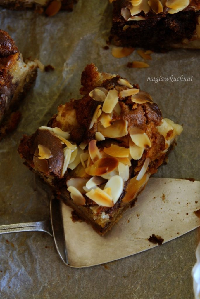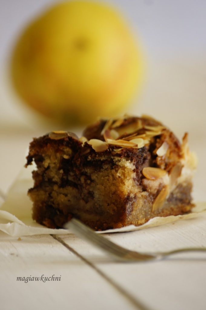 Delikatne ciasto z jabłkami wilgotne i dosłownie rozpływa się w ustach każdego kto je spróbuje 🙂 – jest doskonałe. Z wyrazistym smakiem chałwy i dodatkiem migdałów . Spróbujcie bo naprawdę warto , polecam