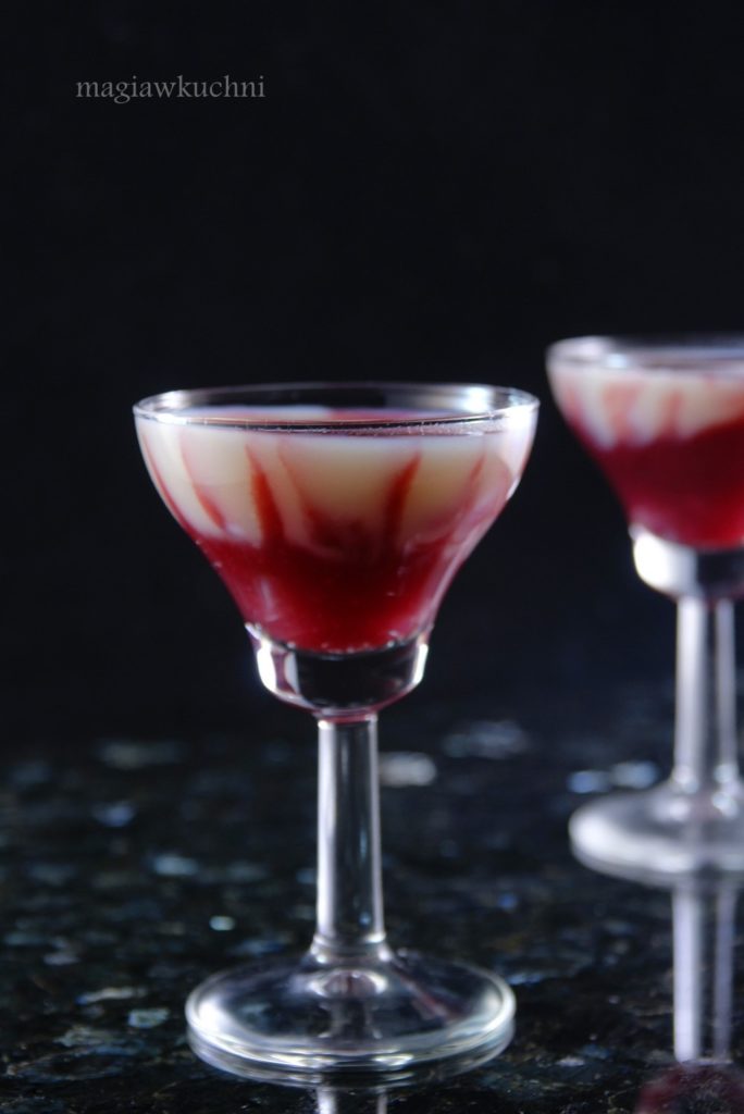 Do większego kieliszka na dno wlewamy schłodzoną wódkę a następnie nektar bananowy oraz z czarnej porzeczki – cienkim strumieniem i podajemy.