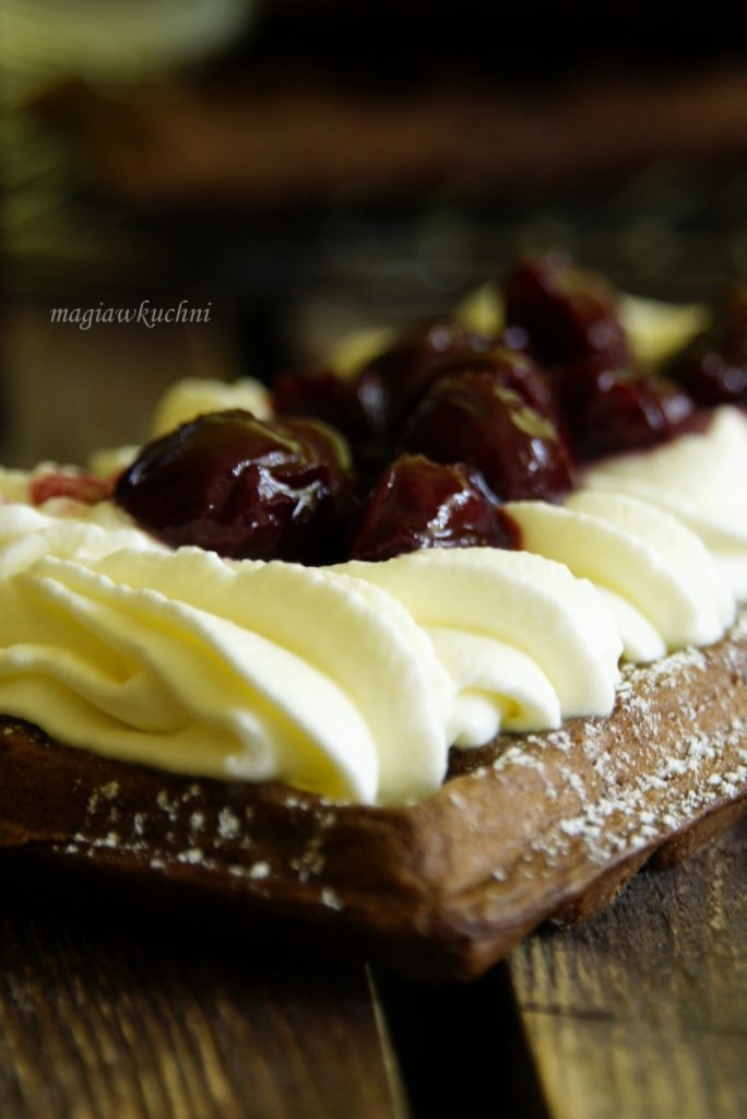 Czekoladowe gofry z cukrem pudrem tak na szybkie drugie – słodkie śniadanie 😉 ale jeśli ktoś woli w wersji bardziej kalorycznej to super smakują z bitą śmietaną i frużeliną wiśniową zwłaszcza dzieciom 🙂