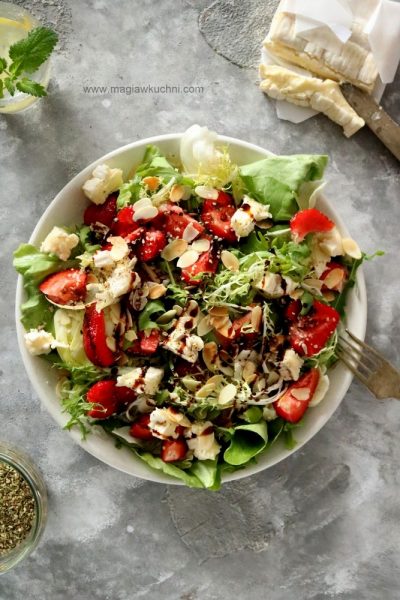 Sałatka z truskawkami i francuskim serem pleśniowym