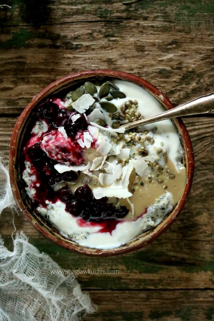 Witajcie mam dziś dal was przepis na keto śniadanie 😉 które nasyci nas na długi czas i do tego jest roślinne oraz bezglutenowe. Jeżeli chcecie bardziej na słodko dodaj odrobinę syropu klonowego choć dla mnie samo mleko w sobie jest wystarczająco słodkie. Można zrobić to również na noc wystarczy wymieszać wszystkie składniki wstrząsnąć kilkakrotnie i wstawić do lodówki a rano dodać tylko owoce 🙂 lub ewentualnie odrobinę mleka jeżeli wolicie bardziej płynne. Polecam