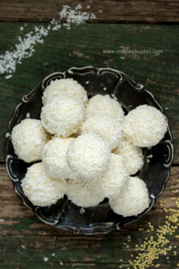 Zapraszam na zdrowe kulki kokosowe w wersji z alkoholem lub bez każdy znajdzie coś dla siebie… taki mały zdrowy deser 😉 ok 30 sztuk