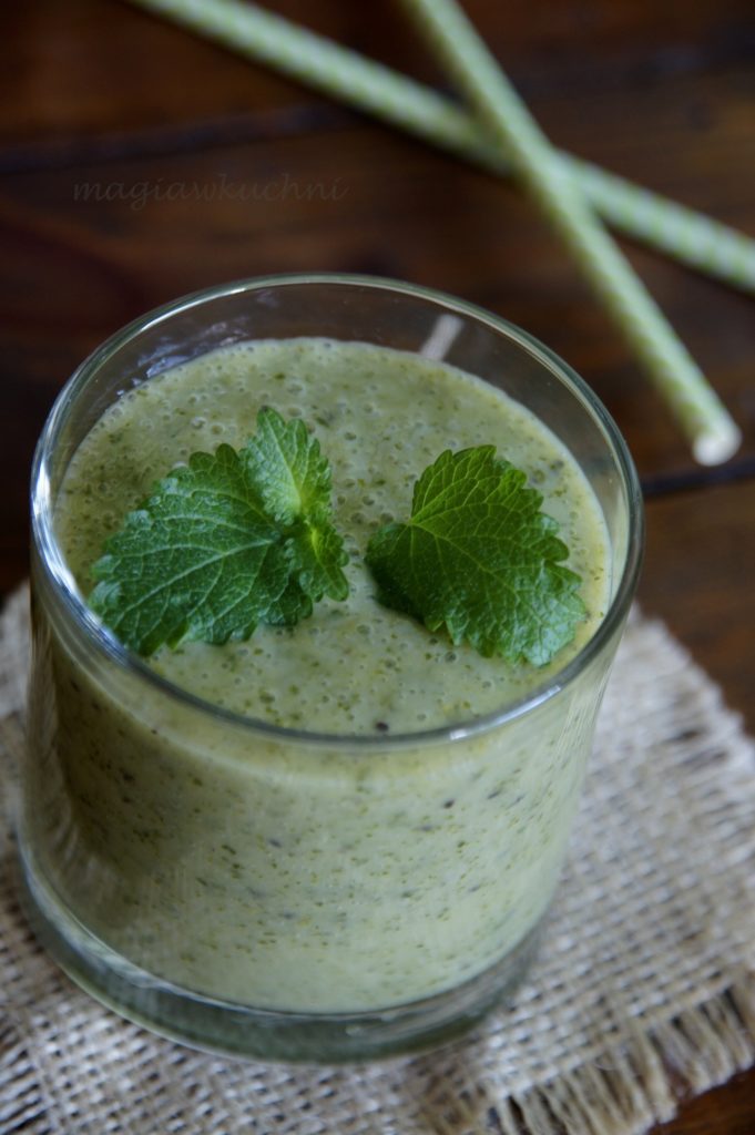 Owoce obrać ze skóry i pokroić na mniejsze kawałki – wrzucić do blendera. Roszponkę umyć, i przełożyć do blendera wraz z otrębami całość zmiksować wraz z maślanką – na koniec doprawić sokiem z cytryny.