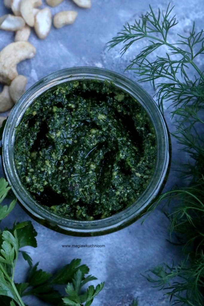 Idealnie pesto musi być mocno zielone i idealnie pyszne aromatyczne oraz kremowe dzięki orzechom nerkowca które kocham miłością wielką. Mam wielki problem bo jestem wprost uzależniona ot tak takiego pesto , do tego można je jeść nie tylko z makaronem ale też z tostem czy ulubiona sałatką koniecznie spróbujcie .polecam