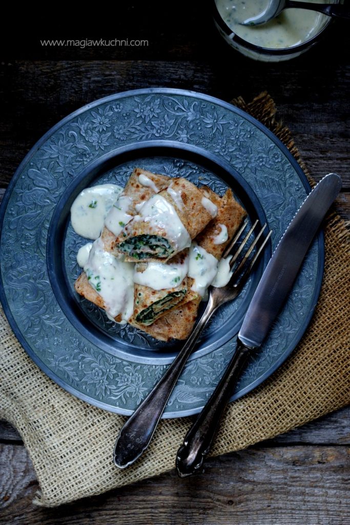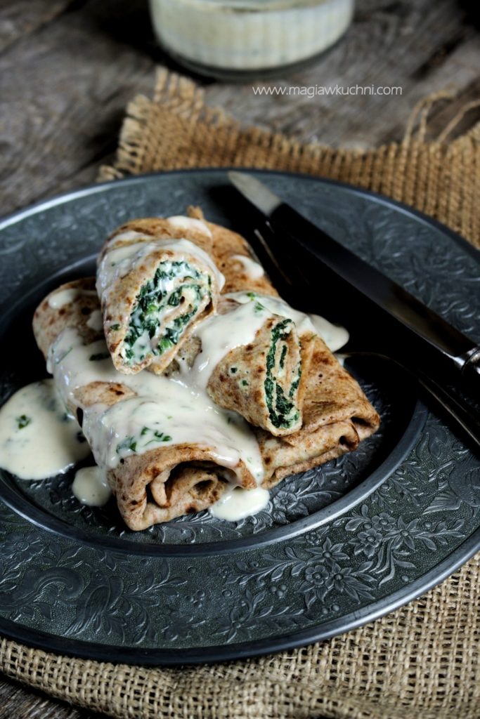 Dziś zapraszam na wytrawne naleśniki z pysznym nadzieniem szpinakowym i sosem serowym . Będzie to doskonały posiłek obiadowy. Połączenie szpinaku i słonego sera w kremowym sosie łączy się idealnie spróbujcie bo warto … polecam