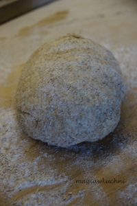 Po tym czasie ponownie zagnieść ciasto i rozwałkować na grubość ok 1,5-2 cm wykroić kółka – przykryć ściereczką do wyrośnięcia. Gdy krążki wyrosną każdy posmarować oliwą i przełożyć do keksówki wyłożonej papierem do pieczenia – odstawić jeszcze na ok 15 minut aby lekko podrosło.