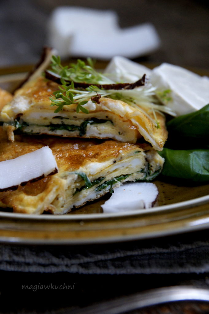 Zapraszam na lekkie śniadanie w postaci aromatycznego omletu z ziołami i kokosem. Jest delikatny aż rozpływa się w ustach , ciężko opisać go słowami dlatego musicie koniecznie spróbować. Idealny również po treningu zawiera zarówno białko jak i zdrowe tłuszcze. Polecam