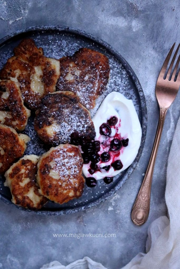 Do misy blendera wrzuć twaróg i zmiksuj , wbij dwa jajka i miksuj przez chwilę aż twaróg się rozdrobni i połączy z jajkami nie musi być idealnie roztarte . Teraz dodaj śmietanę, sok i skórkę z połówki cytryny oraz ksylitol i sodę – połącz składniki, na końcu wsyp mąkę i zmiksuj. Rozgrzej patelnię z odrobiną oleju ( najlepiej smarować ją pędzelkiem), na rozgrzany tłuszcz wykładaj po pół łyżki masy ściągaj przy pomocy drugiej łyżki którą wcześniej maczaj w mące lub oleju lekko spłaszcz na patelni i smażyć na małym ogniu na rumiano z obu stron.