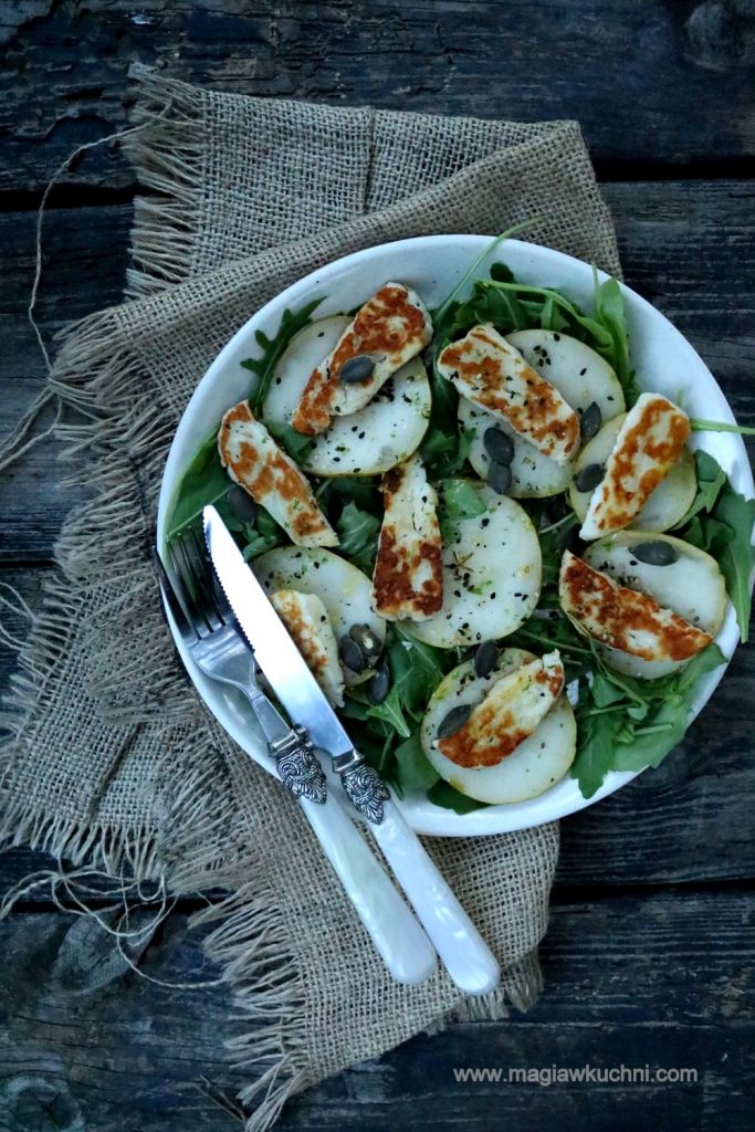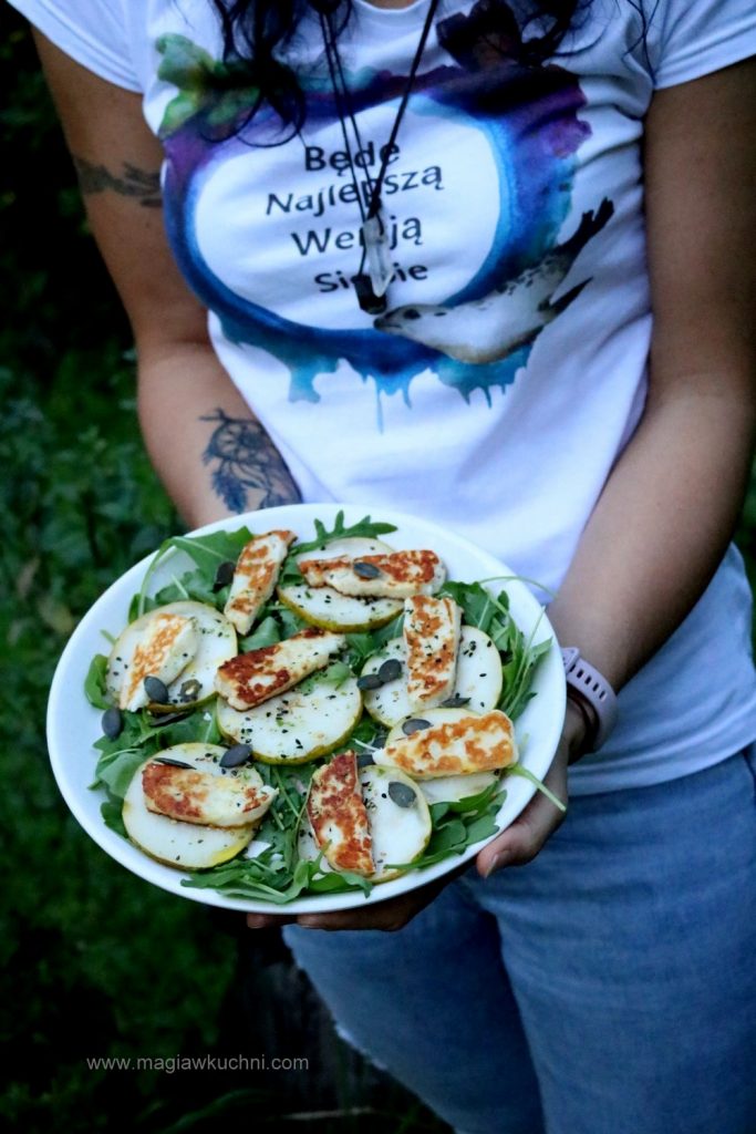Moja propozycja na dzisiejszą kolację to szybka sałatka z serem halloumi i może być również jako przekąska w ciągu dnia 🙂 tu również się sprawdzi. Słodka gruszka z plastrami słonego i ciepłego grillowanego sera w połączeniu z lekkim dresingiem uderzy z pewnością w wasze kubki smakowe. Do tego jest pyszna i sycąca polecam.