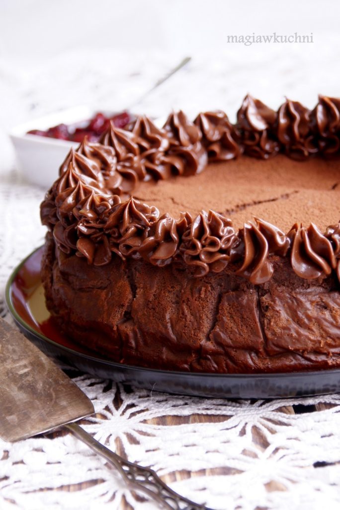 Sernik trochę truflowy w smaku przypominający brownie bardzo sycący z pewnością go zbyt dużo nie zjemy 😉 ma cudowny smak jest pyszny … naprawdę ciężko się od niego oderwać tak to jest ze smakoszem czekolady … Polecam