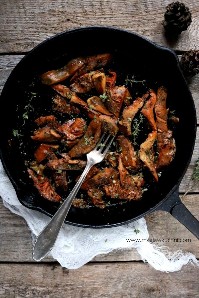 Grzyby uwielbiam pod każdą postacią ale najlepszy sposób na ich wykorzystanie to usmażone na maśle i zjadane prosto z patelni. Do tego odrobina świeżych ziół z ogródka i gotowe. Oczywiście zioła można wymieniać w zależności co macie pod ręką np: natka pietruszki czy koperek będą również świetnie pasować . Polecam