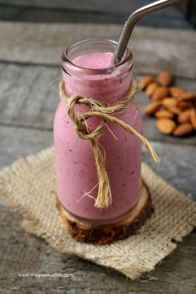 Smoothie tym razem wiśniowe na mleku migdałowym jest pyszne odżywcze i orzeźwiające doda nam energi na początek dnia. U mnie w domu bardzo często goszczą smoothie, koktajle czy tez soki bardzo je lubimy dostarczają mnóstwo zdrowotnych składników idealne dla dużych i małych …polecam