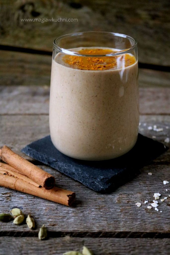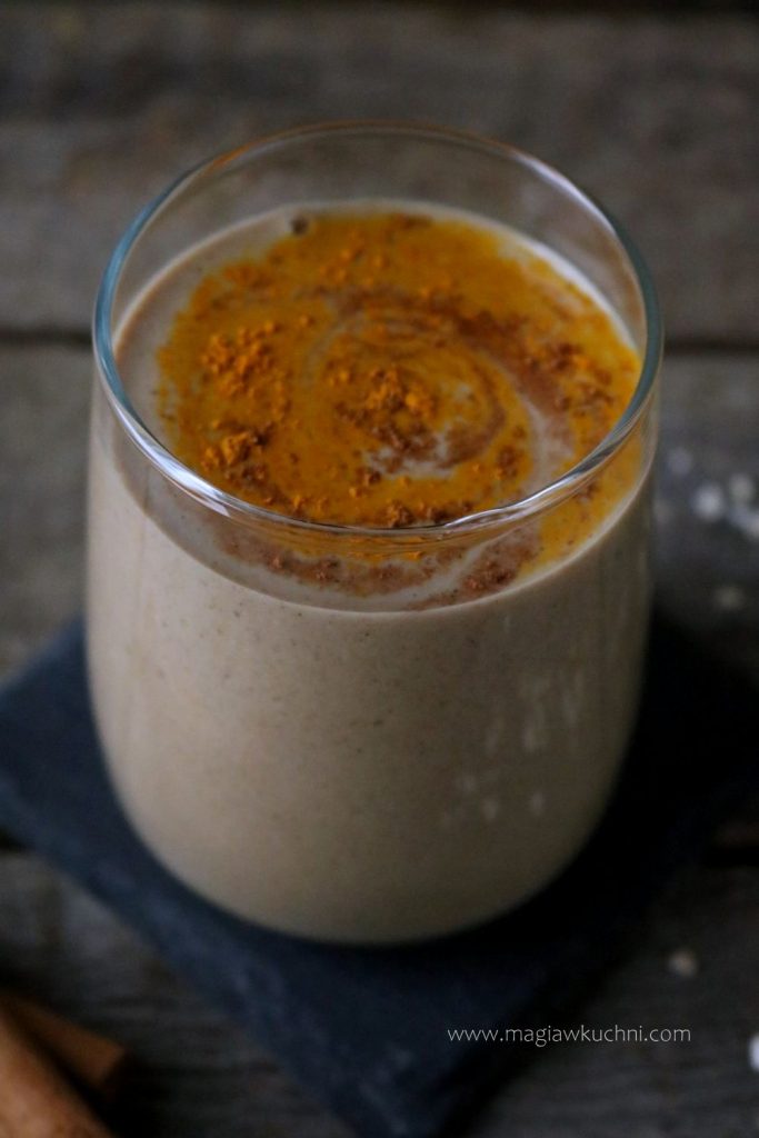 Witajcie dziś mam dla was przepis na orzeźwiające i kremowe smoothie takie trochę zimowe 😉 bo z przyprawami korzennymi . Użyjcie do jego przygotowania dowolnego ulubionego białka może być roślinne lub na bazie serwatki. Będzie idealne na śniadanie lub po treningu do tego jest szybkie w wykonaniu . Polecam