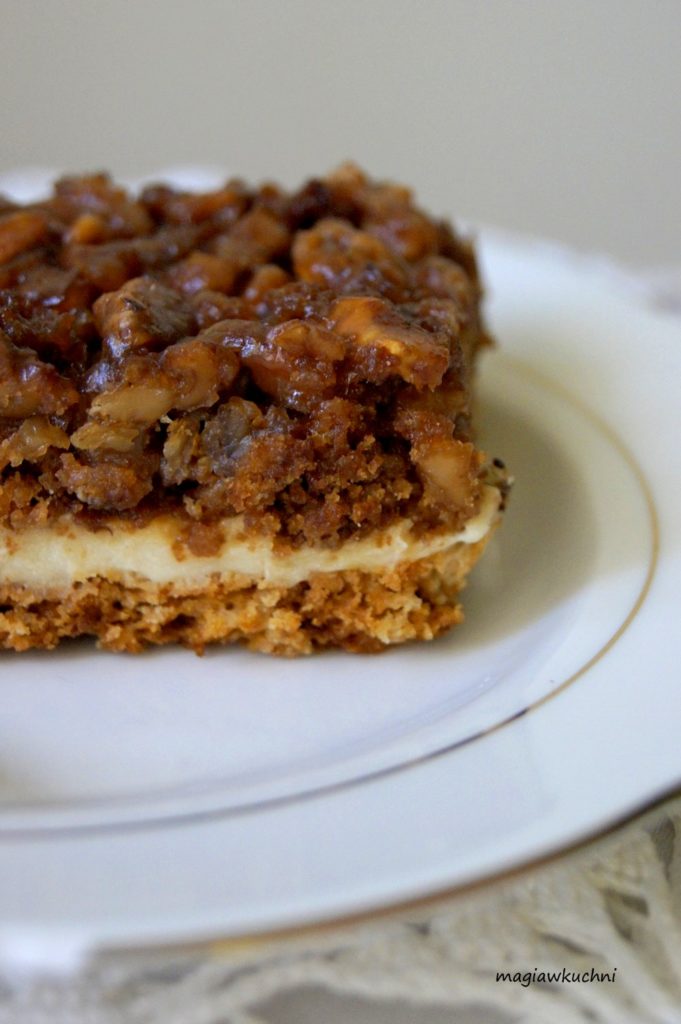 Pyszne ciasto na bazie orzechów w karmelu i delikatnego kremu , blacha ciasta znika raz dwa kiedy tylko pojawi się na jakiejś imprezie robi furorę .Polecam