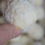 Za pomocą łyżeczki nabierać porcję ciasta i formować kulki w zmoczonych wodą dłoniach , układać na blaszce spłaszczając je widelcem który również jest dobrze zmoczyć w wodzie wtedy ciasto nie będzie się kleiło. Wstawić do nagrzanego piekarnika 180 C i piec 8-10 minut , upieczone ciasteczka zostawić chwilę w uchylonym piekarniku a następnie studzić na kratce.