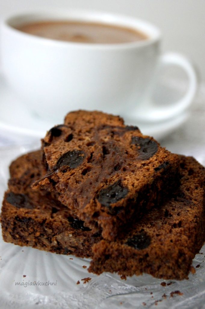Czekoladę, miód, cukier, masło włożyć do garnka i rozpuścić – dodać mleko i odstawić do ostygnięcia. Jajka roztrzepać w misce i połączyć z ostudzoną masą. W osobnej misce połączyć mąkę z przyprawami i proszkiem do pieczenia. Całość połączyć z masą, dodając śliwki, imbir i dżem. Podłużną keksówkę o długości 26-28 cm wysmarować masłem i oprószyć bułką tartą. wlać ciasto i piec w nagrzanym piekarniku 160 C 60 minut.