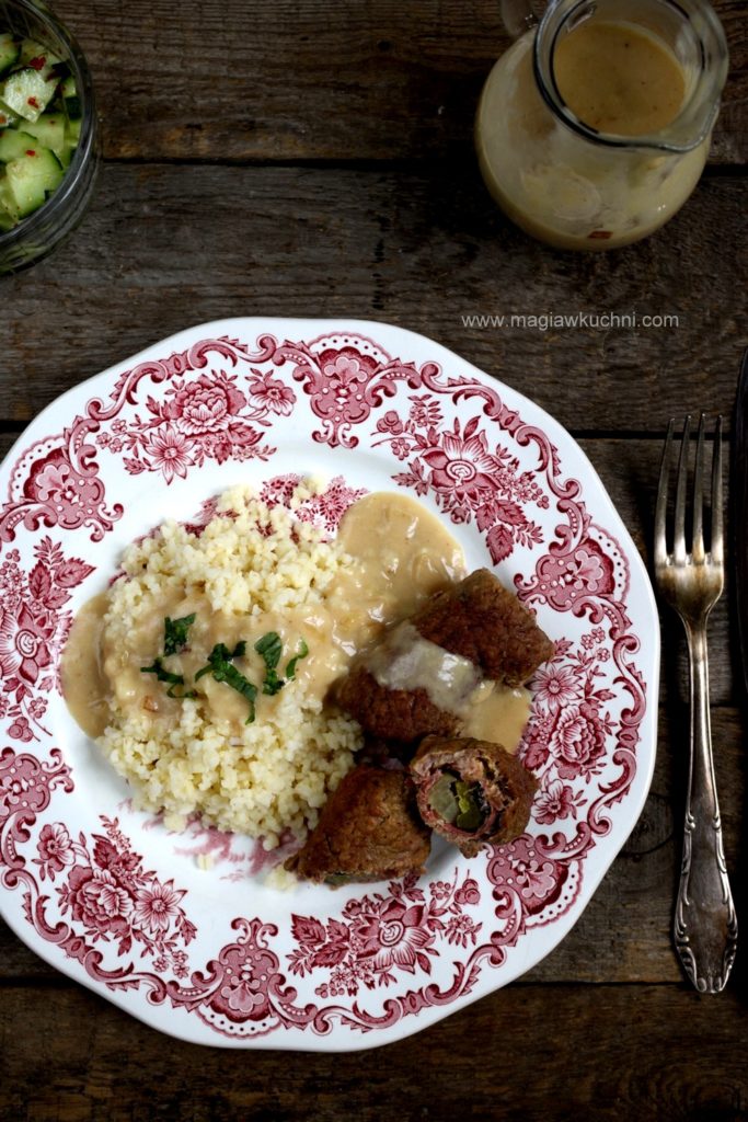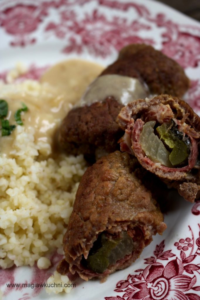 Zrazy wołowe z boczkiem i sosem cebulowym
