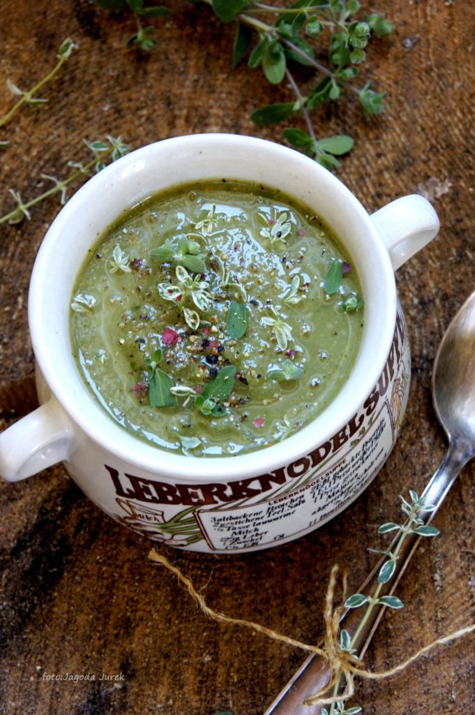 Bardzo smaczna zupka z cukinii delikatna w smaku i aromatyczna, cały jej zapach rozchodzi się po domu pycha uwielbiam ją taka cieplutką ze świeżym tymiankiem i pieprzem.